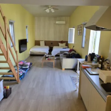 很滿意這樣的房間,什麼都有~下次還會考慮入住~這邊看起來是新設的區域,很乾凈,廚櫃中還有碗盤餐具,如果有缺東西還能去櫃檯借,很棒的地方。