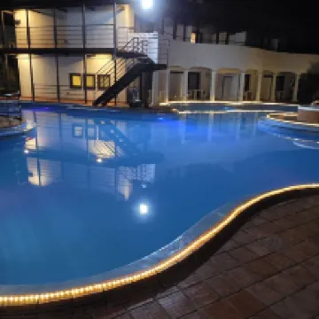 圍繞泳池建造的飯店由磚塊建造成,其餘部分則是被稱為「chelet」的大型容器。後者非常舒適、寬敞且實用。我們的房間裡有兩張大床,閣樓上還有三張床,可以輕鬆容納三個孩子。浴室雖然小,但是什麼都不缺。水很熱,易於調節。還有一張沙發和一張咖啡桌。它是洗衣機和烘乾機配件的一部分,非常 舒服的。貨櫃/小屋的油漆很漂亮。游泳池真的很大,而且維護得非常好。唯一的缺點是,如果你沒有交通工具的話,爬山會很費力,尤其是帶著行李箱的時候。工作人員在各方面都非常樂於助人。