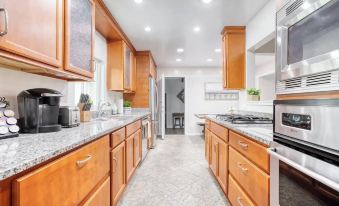 Beautiful retreat nestled in the city of Orange, just a short drive to Disneyland, the Anaheim Convention Center, and the beach cities. The home has 4 bedrooms (2 masters), 3 bathrooms, a full kitchen, and a kitchenette/wet bar. The home sits on a large lot with a spacious backyard perfect for BBQs, dinners, sitting around the fire pit, or just enjoying the fresh air. The home is immaculate with a newly renovated wing. We take pride in providing an exceptional experience for our guests.