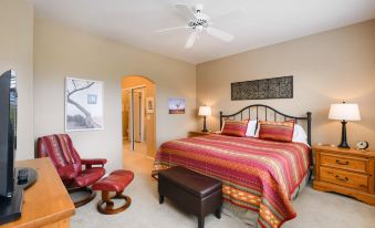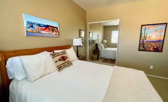 This condo is tastefully decorated with a collection of local Southwest art, and features a large living space and comfortable furnishings throughout, creating space for everyone to enjoy. You can even bring the family dog! The full kitchen features stainless steel appliances, bar seating, and is well-stocked for most cooking needs. A guest in this condo will have access to the amazing shared amenities the community has to offer including an outdoor, heated pool, a convenient hot tub, and even a well-equipped fitness room!