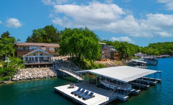 Plan your escape to The Sunset Lodge! This incredible lakefront home sleeps up to 20 people and features Million Dollar views in a quiet cove, three waterfront balconies, vaulted ceilings, and a custom concrete fire pit with tons of seating to enjoy your evenings around the fire. Make memories that will last a lifetime on the private oversized dock that features a large sun deck with lounge chairs, hammock swings, youth kayaks & adult kayaks, a flat screen TV, swim step, and 12x36 boat slip for guests to use! This home has undergone major renovations in the spring of 2024, including new decks and railings!