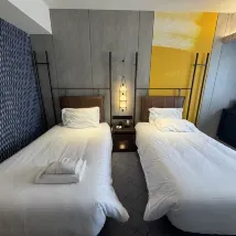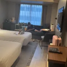 地理位置不錯 周圍很安靜 房間真的大 兩個人足夠了 前台態度特別好 沙發完全可以再睡一個人 而且非常適合情侶約會 懂的都懂 洗漱用品用的好像是Aesop 全套洗漱用品用的非常舒服 很香 唯一的缺點就是雙床房床真的有點窄了 被子還特別寬 夏天晚上睡覺被被子壓得死死的 特別熱 很不合理 不想蓋也沒辦法 想蓋一點其他會被壓得死死的 希望酒店可以重視這一點 如果改進真的就很棒了