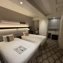 設施:房間小小的,我們定的是兩張1.2米的,中間不能合併在一起。 衞生:打掃的很乾凈,睡覺也舒服。 環境:真的超級方便!到JR站4分鐘左右,坐車去各個地方都很便捷。站台樓下就是711便利店,去梅田商圈就一站路,我們走路過去大概20分鐘。旁邊吃的也挺多,樓下就是很多日本人吃夜宵的小館子,很有氛圍感。還有很有名的一個鴨肉麪,天天排隊 服務:還可以吧,除了入住和退房基本沒有怎麼接觸