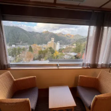 這温泉旅館格價不高、但該有的都有、風景十分好、溫泉也很舒服,貸切風呂有4個、沒有人就可以自己泡、距離鳴子峽幾分鐘路程。