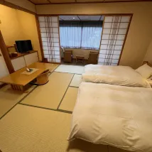 非常差嘅體驗,建議大家住溫泉旅館不要預訂連鎖品牌,住番傳統溫泉旅館,晚餐人地其他人全部安排在包間,只有我地就在走廊上,張檯超級窄,仲要係自助餐,我真係唔知點樣食,啲食物要放旁邊檯,提出換檯要求,竟然要我地等其他人食完,咁入住時候就唔好問我地要食幾點啦,安排如此不當,最後我地一啖都無食到走左,酒店一個電話慰問下都無,我地餓住咁度過,全程體驗極差,二千幾蚊一晚,咁嘅質素,建議大家幫襯番傳統溫泉旅館