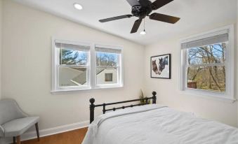 We had a great stay here. It was perfect - enough bathrooms and rooms that were great sizes for our family. We had three adults and two kids (ages 1 and 3) (one slept in a pack and play). It was perfectly located and easy to get to downtown Leesburg and many of the wineries in the area. The weather was so nice and we enjoyed sitting on the porch at the end of the night. The yard was perfect for the kids. We’d definitely stay here again.