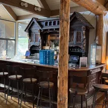 酒店就在猛獁湖小鎮上,出了優勝美地往東開一小時的樣子。酒店位於滑雪度假勝地附近。周邊超市,飯店應有盡有。房間屬於正常水平,但大堂吧的裝修非常有感覺。