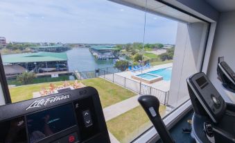 Relax in style with a private balcony and master bedroom suite, each providing sweeping vistas of the marina and lake. Your comfort is our priority, as evidenced by the plush king-sized bed in the master bedroom, and a private master bath featuring a double vanity and walk-in shower. The guest bedroom accommodates all with two queen-sized beds and space for an additional blowup mattress.