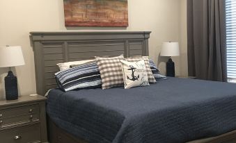 Incredible BRAND NEW lake front poolside condo on the first floor of the Harborview. EVERYTHING is at your fingertips! Watch both the sun rise and set from your private patio. Enjoy FULL SIZE fully equipped kitchen with a French door frig with icemaker. Watch boats go by while preparing a meal on the oversized island. Don't worry about showering first, enjoy unlimited hot water with a Rinnai tankless hot water heater. Master suite has a king bed with beautiful harbor views, smart TV, and master bath has a double vanity and oversized shower. Front bedroom has two beds (one queen one full/double) and smart TV. Hall bath has 60" soaking tub and shower. Living room has 2 twin sleepers and a queen sofa sleeper for overflow with smart TV. Step off your patio to enjoy coffee or smores by the gas fire-pit or soak in the hot tub. Soak up some sun poolside or cookout at the cooking pavilion with covered seating, 2 gas grills & big screen tv. Or start your day off at the second floor gym overlooking the lake. Massage available onsite.