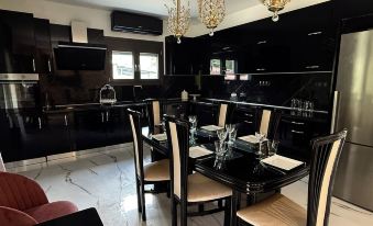 寬敞現代化的廚房配備了您在家準備飯菜所需的一切,讓您可以時尚地烹飪和用餐。寬大的餐桌可舒適地容納您的團隊,讓您輕鬆愉快地共享美食。