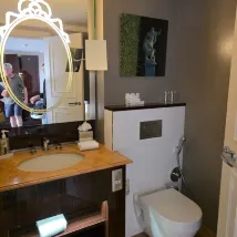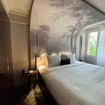 What an amazing gem within this bustling city. Located in a very quiet neighborhood. 10 min walk to Eiffle Tower and 20 to the Arc de Triumphe. From Julia in the front desk, who was so gracious, accommodating and even went out of her way to escort my parents to their rooms, and gave a complimentary birthday treat for my dad and all of us at the hotel bar. The room was big for a parisian room, and was able to get a rollaway cot for my daughter for another 100 euro. They have Tokyo milk bath products and complimentary water. They also had a lift that accommodated 4 people, which is another plus for a Parisian hotel. The AC worked in the room and we had a beautiful garden view, that we can open the windows. The breakfast was awesome with Stephane and Amit catering to us and making sure we had everything we needed. The breakfast was 2 choices of buffet style or for another 12 euros, you get a choice of an omelet. Otherwise, my stay was amazing and the bed was comfy and the service was impeccable. Even though this was an impromptu trip d/t a flight cancelation and brought us for 24 hrs to Paris, this stay was a wonderful surprise to a stressful time. Merci beau coup Renaissance Nobel for the great service, especially Julia, Stephane and Amit.