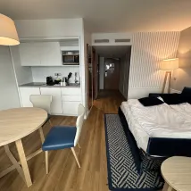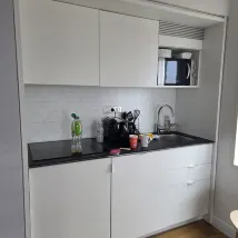 設施:首先房間很大,大概20多平米,在巴黎十五區,還帶廚房,就很不錯,有四套餐具,三個鍋,滿足大部分烹飪需求。樓下有一家韓國超市,可以買到很多蔬菜,豆腐,米麪之類的,比較符合國人口味的食材。距離300米有一家很大的超市,可以買更多的食材,法國當地人的大超市,非常方便,酒店樓下有一個飲水機可以接水,不過電梯非常慢,大概三十一層,每層16間房,大概三個電梯,因為我們去的那幾天有一個電梯一直是壞的,所以等電梯要好久。 衞生:這個不知道為什麼一直沒人打掃,我們住了七個晚上,一直沒人打掃過房間,由於我預訂的時候知道不是每天打掃,自己備了垃圾袋和一次性浴巾之類的,每層樓有一個扔垃圾的房間,你可以每天去把廚房垃圾和衞生間垃圾扔過去。 環境:在十五區,離塞納河很近,走到鐵塔大概十七八分鐘,也很安全,我們十點多走在路上也沒啥事。周邊主路上有很多飯店早餐店,很方便。另外周邊走一走也有不少飯店。谷歌地圖可以查詢飯店評分和營業時間。 服務:下午三點才可以辦理入住,自己可以用Bolt打車,車停在門口也很方便。