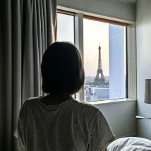 訂房的時候要求住高樓層…結果還好,被安排到了32層樓的30樓!艾菲爾鐵塔看了很多遍,都看膩了……(其實沒看膩!ㅠ)ㅜㅜ看著艾菲爾鐵塔睡著了……🖤 兩張照片都是在住宿處拍的!