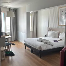 飯店位置極佳,靠近地鐵和景點。步行約10-15分鐘即可到達艾菲爾鐵塔。我們預訂了四晚大床房。然而,當我們在2025年9月1日晚上11點入住時,房間尚未打掃。房間裡有枕頭和用過的床單。我們很驚訝,於是下樓反映此事。由於房間無法使用,飯店為我們安排了一張拼成一張的雙人床,這對我們來說並不舒服。 2025年9月5日,其中一部電梯正在維修。從2025年9月5日早上到中午,只有一部電梯正常運轉,辦理退房手續需要15-20分鐘——很多客人,包括我們,都等了太久! 同時,在我們入住的一周內,網路連線時斷時續,因為根據房間裡的通知,飯店正在進行維護。應該更好地規劃,盡量減少對酒店客人的干擾。總的來說,考慮到酒店優越的地理位置和全球知名的連鎖飯店品牌——Aparthotel,飯店服務還不錯。