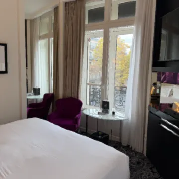 比較新的酒店,房間在巴黎市區算是大的,衞生間超級大,感覺有點浪費了,分一半做房間會更香咯…設施好,床鋪舒服,工作人員熱情服務周到,早餐還算不錯的,巴黎的牛角包🥐真的會其他小城市的好吃哦~地理位置很好,隔壁走路5分鐘有一家小眾15-18世紀藝術博物館,挺美的,走15-18分鐘就到歌劇院巴黎春天老佛爺,打車15-20分鐘就能到蒙馬特高地,走路半小時也能到,從蒙馬特高地走下來會比較舒服,下樓梯比爬樓梯感覺不太好太多…同樣打車10-15分鐘能到鐵塔15區那邊,走路去大小皇宮也是10多分鐘,8區的治安是好的,周圍很多咖啡館、超市和Pharmacy,滿足所有需求。酒店特色是Spa和泳池,超級温暖,愛水的小夥伴首選。下次來還會考慮住這裏~