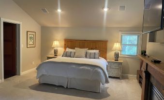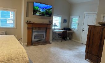 After a full day skiing, jump in the private hot tub to soothe your sore muscles. Relax by the wood-burning fireplace in front of a new flat screen while the kids venture upstairs to the loft to the flat-screen cable TV. The primary bedroom has it's own flat screen and gas log fireplace as well.