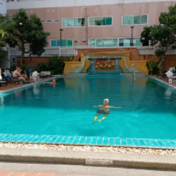 酒店位置在芭堤雅市西部,近海灘區域。交通非常方便。距離風月步行街和海灘路不遠,坐車數分鐘可到。附近很多食肆、便利店、按摩店等。酒店服務員態度有禮,樂於助人。設施方面,房間乾淨衛生,但浴室只提供洗髮和沐浴露。設有室外游泳池,可以健身。總的來說,房價不貴,性價比很高。我的評分: 3.8/5