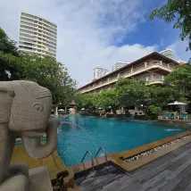 一副老貴族氣質,生活用品都能看得出來曾經的豪華。也算蠻乾淨的,不過設施陳舊。取電卡經常跳閘,鏡子設計不合理,洗臉刷牙會出來一串人影,跟鬼片似的。泳池兩側種滿紅黃兩色雞蛋花。非常適合仰泳,樹蔭涼涼,花影移動,但路邊下水道臭水味不時隨風吹來,就很敗興。點菜特好吃,不過服務費和税費價格不菲。總之,適合與之氣質相投的人吧。所有的優點都伴隨缺點,所有缺點不在意的話,也沒那麼要緊。有意趣,適合躺平。甚至有點穿越感。這些都絕非統一化酒店可比的。
