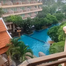 設施:維護得還行, 衞生:乾淨 服務:正常 環境:中等 一進大堂,就是那種傳統的泰式建築, 大堂寬敞正對泳池和沙灘,感覺很多老派的泰式酒店喜歡這種設計。入住幾天後覺得這是家曾經高大上過的酒店,紅木的傢俱和Mini吧,帶浴缸的洗漱間,對不喜歡曬太陽的人友好的泳池以及那充滿泰國風格的圍牆😄。但應該很久很久沒有翻新過了。床品,布草都很舊。各種設施滿滿的老舊感,但維護得還行,比床品布草得感官好。早餐就在泳池邊的餐廳,環境不錯,品種就乏善可陳了。一週幾乎沒有變化,沒有粥,湯粉。偏西式的早餐,但火腿,培根,肉腸得品質很一般。也就提供雞蛋的攤位不錯,品種很齊。酒店位置不錯,走路5分鐘有兩家7,11,過馬路就是中天海灘,周邊有10分鐘左右有許多餐館和餐吧,但有一説一芭提雅的泰餐不好吃,對四川人來説太甜了。遠遠不及曼谷甚至普吉。記得點餐時提醒少糖。對於不喜歡熱鬧,衹是想攤在酒店的這家馬馬虎虎吧。