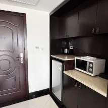 住在五樓。房間很大很舒服。充足的儲存空間。賭注兩側都有電源插座,但必須斷開另一側的燈才能使用。床很好,有四個枕頭和奧斯曼沙發/椅子,另一邊還有一張椅子。櫥櫃裡有微波爐和水壺,還有餐盤和湯碗、叉子和湯匙。淋浴很好。房間和走廊都保持得很乾淨。屋頂上的游泳池很棒,微風徐徐,但這裡和那裡還需要一些修理和油漆工作。泳池裡的許多磁磚開始掉落,太陽珠要么破損,要么沒有床墊。 泳池裡的瀑布/岩石裝置可能幾年前就停止工作了,已經壞了,需要拆除。電梯還可以進行一些油漆工作。如果您想自己洗衣,入口對面也有投幣機,價格更便宜。再往前走一點,通往中央路的小巷(芭堤雅巴生9 巷)上有一些不錯的餐廳和理髮店,轉角處有一家很棒的小披薩店(芭達雅披薩n 披薩店)。步行 2 分鐘即可抵達 Soi Buakhao,這裡有您能想到的所有娛樂場所和餐廳,步行 8 分鐘即可抵達中央購物中心。總而言之,這是一個非常好的住宿地點,價格合理,地理位置優越,位於芭堤雅市中心,但酒店前面沒有直達交通。只是在某些方面需要一點細心照顧。