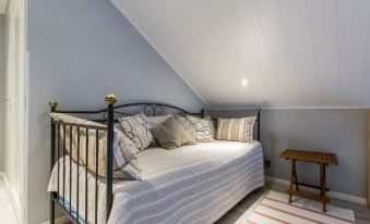 Upstairs 1 bedroom with one bed 120cm and another 90cm, toilet, shower, at the open loft 1 single sofa bed 90cm. Terrace with great view.