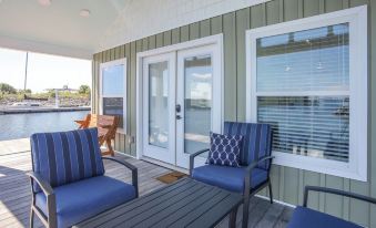 Dock Holiday, the latest addition to our "fleet" of 4. is located on Pensacola Bay in Seville Harbour Marina (facing east). This one-bedroom, one-bathroom floating getaway sleeps 4 people (queen bed + queen sofa sleeper), full bath (shower only), and features a fully equipped kitchen with full-size appliances, the bar/counter and dining table provide plenty of seating. Relax on the front porch and enjoy your morning coffee, a view of the bay, or a glass of wine at the end of your day.