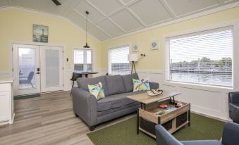 Please note that this Houseboat is located on the water in a marina, and you will be walking on docks that may include uneven footing. There are no railings on the front or back decks or along the docks. May not be suitable for young children, people with stability issues, or accessibility issues (i.e. wheelchair - standard door widths throughout).