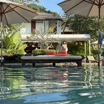 Прекрасный отель, с удобным месторасположение в центре, номер очень просторный и большой, порадовала огромная просторная кровать, свой уютный балкон. Мы бронировали бунгало оно как раз было рядом с бассейном и кафе для завтрака. В бассейне топчан (не знаю как назвать) тот что большой и мягкий сдаются в аренду за депозит в 1000 Батт, мы воспользовались очень удобно, бассейн прекрасный проплавали весь день в нем