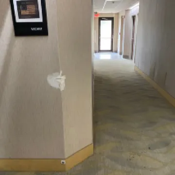 Find somewhere else to stay. This place is covered with a layer of grime. I cannot believe it is a Hilton property. The rooms smell of urine and ammonia. The staff is professional but there is never a manager on duty. Rooms are dirty TV doesn’t work Carpets are stained as well as the walls Elevator is filthy Workout room has standing water Ask for another room and it may be worse than the one you’re in DO NOT STAY HERE.