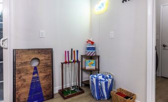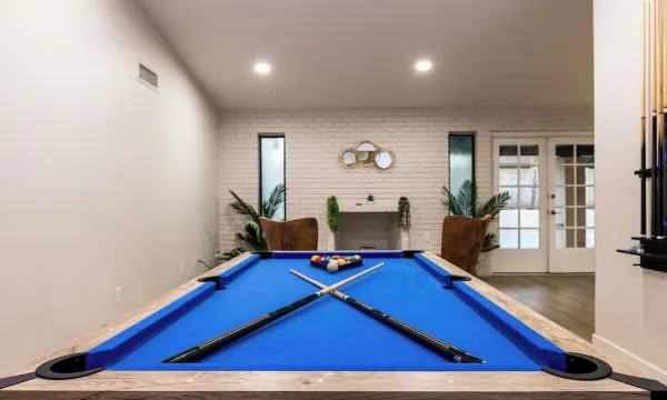 When you're not soaking up the sun or swimming in the pool, enjoy the spacious game room complete with a pool table, arcade games, and a 65" Smart TV for movie nights or sports games. There's also a selection of board games for some friendly competition. This room is a great place for the whole family to gather and have fun!