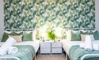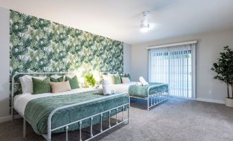 This home offers 4 beautifully designed bedrooms with modern and artistic touches. The master bedroom is a true retreat, complete with a private shower, double vanity, and a walk-in closet. The other 3 bedrooms feature 5 comfortable queen beds, with ample closet space. Additionally, 2 queen folding mattresses are available, providing extra sleeping arrangements and allowing the home to comfortably sleep up to 14 guests. Perfect for large families or group getaways!