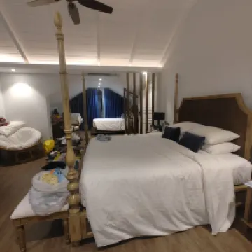 非常不推薦的度假村!樣樣要加錢!為了這個沙灘而訂的villa結果非常失望。 我們訂的是4房的villa,多出的3個小孩 每人要加450,000越南盾for住宿和早餐也算了。 預訂頁面寫着有4張single,2張queen,1張kingbed,到那裡衹有6張single&1張kingbed。和前台説了非常非常久最後給的答覆是trip.com寫的是錯誤,要另外加床的話又要加錢。。。最後free了一張像木板的床🌚 度假村裡衹有一家餐廳,沒有任何mart,所以食物貴是肯定的,但7點之後你看不到其他人好像住在荒廢區。。room service到房間的餐也不好吃😂 唯一服務好的衹有接待車來回接送😀 早餐不好吃,選擇少,服務人員非常沒禮貌,還沒用餐結束直接收掉碟子不止一次,連續兩天都這樣。
