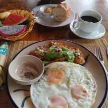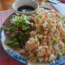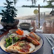 We did not stay at this resort but down the road. The food here was definitely the best of the few restaurants offered on this road. True there is only one lady working the whole restaurant and she is exhausted. Too tired to even smile. And if you are not staying at the resort they will handle all their guests first even if you arrived before everyone. She told us we would need to wait but never thought it was to actually serve us last of all the people. But, food is really good. Fresh ingredients. The beach is the nicest beach on the island. We drove all around to explore and it is the cleanest water and beach. The overall feel of this island is rustic so be prepared if you come here.