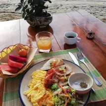 This is a place with character and soul, where you can tell it’s managed with care and attention to detail. And the location is beautiful. The beachfront is about 200 meters long I estimate, with around three-quarters being real beach, although not very deep. It has a relaxed, inviting atmosphere with trees, hammocks, and swings, and it’s clean and well-maintained. The cottages themselves are thoughtfully designed and have more personality than those at some neighboring resorts. Our room was comfortable and equipped with everything we needed. The restaurant was very good. The menu offered a wide variety of options for a resort of this size, and while a few items were occasionally unavailable, it didn’t bother us because the food was fresh and delicious. It was easy to stay for several days and enjoy different meals without feeling the need to look elsewhere. Staff was friendly and helpful. If you’re looking for a peaceful, laid-back stay, this place is a good choice. It’s great value for the price and perfect for those who appreciate a place with character.