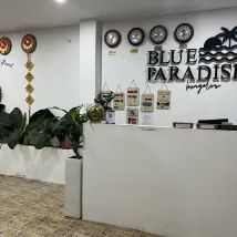 這是一個非常漂亮的平房度假村,有一個巨大而乾淨的游泳池。我們最後在這裡住了三個星期!藍色天堂,名副其實,環境優美,植物保存完好。很棒的員工,總是為您提供所需的一切幫助,而且超級友好!乾淨的房間,優質的服務,新鮮的游泳池,靠近海灘,餐廳和良好的價格。 👍