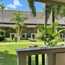 Территория отеля очень ухоженный . В номере были большие зонты , так как у них был сезон дождей , зонтики были кстати . Кофе( несколько видов) чай пополнили каждый день , вода в бутылках так же .