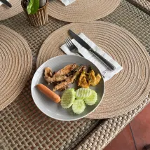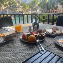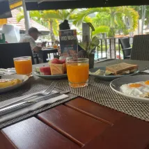 Отель неплохой, с компактной красивой территорией, но уже устаревший, требуется реновация. Завтраки уж очень минимальные для европейцев, ребенку практически нечего было есть кроме сладких булочек. Да и для взрослого совсем не разнообразно.