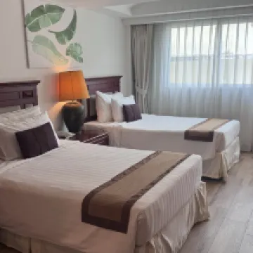 Great location and excellent customer service. However, the AC is not very effective—you can only feel it when you're on the bed, not throughout the entire room. AC sucks! The hotel feels outdated and could be cleaner. The bed is hard and uncomfortable. Also, they don’t exchange pool towels once they’re used, leaving you with a dirty wet towel all day