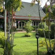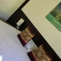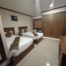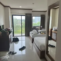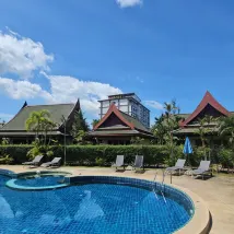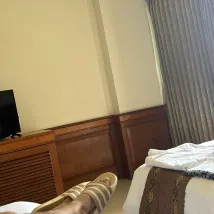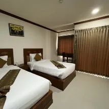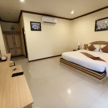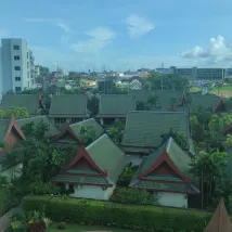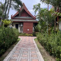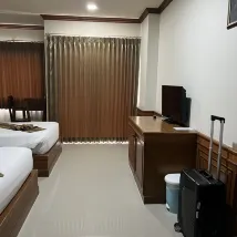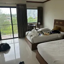 由於我的航班在午夜抵達,所以我住在機場附近的這家飯店。從機場搭計程車到飯店只需5-10分鐘,費用為100泰銖。除了主樓外,飯店還有約10間小屋。我住在一間小屋裡,房間寬敞、乾淨、舒適。淋浴和水龍頭的水壓很弱,需要20多分鐘才能把熱水放滿浴缸。水溫大約為攝氏35度。購物方面,飯店大門右側有一家7-11便利商店。早餐是菜單上的選擇,不是自助餐。飯店前台非常樂於助人。