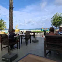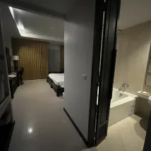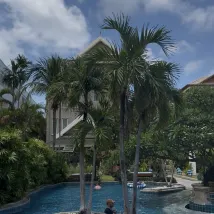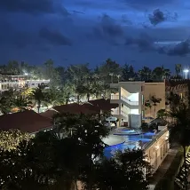 很好!來之前很擔心,因為位置便利就先預訂了。入住以後真的很喜歡,服務和設施的細節到位,例如大堂門口的沖腳池,温水!也不用金雞獨立就能把沙子沖掉;去餐廳吃早餐的路上一路有遮雨棚,泳池的少部分有樹可遮陽......。陽台門很隔音,房間大,不潮,明亮,提供沙灘毛巾和人字拖,提供一把雨傘,也有牙刷!!!以上都是沒想到的,真的很意外。 服務態度也都比較温和,入住退房都挺快,沒要按金。在泳池吧點了薯條,很熱乎。泳池由淺到深,最深的地方大概1米4。 洗澡水很熱,水量夠大。早餐種類不太多,夠吃,住了兩晚早餐不重複,都有熱的肉菜,兩台咖啡機。