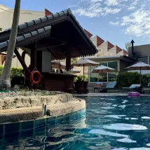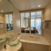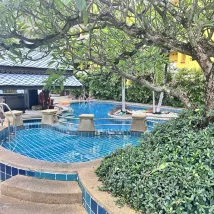 回來才發現我定的豪華間,給的是後面的尊貴房,默默的升級了也不説一聲,真的蠻幸運的,不過浴池我們也沒用。備註的要雙床也滿足了,唯一就是雨季感覺比較潮濕,泳池小,泳池不給浴巾,要從房間裏拿上拿下的,好在確實離海灘近,早餐也還不錯,應有盡有吧!泳池7點就關閉了這個沒辦法。這個價格我認為性價比真的很高了! 還有就是旁邊就一家711晚上排隊人超級多…