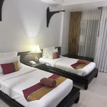 飯店位於安靜的區域,但距離芭東海灘(計程車10分鐘)或卡塔等熱鬧景點很近,卡塔的夜市尤其熱鬧。客房寬敞,設施齊全,並提供豐盛的自助餐。