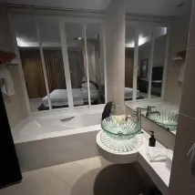 我們真的非常喜歡這家飯店😃🔥 我們於2025年9月21日至26日入住。飯店由兩棟建築組成,每棟四層,設有三個游泳池。我們住在2號樓的三樓——雖然離海邊稍遠,但視野開闊,而且可以使用兩個游泳池。房間雖然不是全新的,但寬敞明亮,乾淨整潔,設施齊全。房間裡有淋浴👍(飯店照片上顯示的是獨立浴缸)。陽台很大,所以我們每天晚上都會使用。房間有烘乾機,但吹風機功率較小。房間每天都會打掃,這點很棒。早餐種類豐富,味道鮮美,還能欣賞海景。飯店位置絕佳-步行幾分鐘即可抵達海邊,飯店位於卡倫鎮中心,附近有7-11便利商店、咖啡廳和水果店。步行前往卡塔也很方便。總而言之,我們對這家酒店非常滿意,絕對會推薦給其他人!