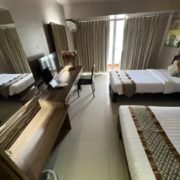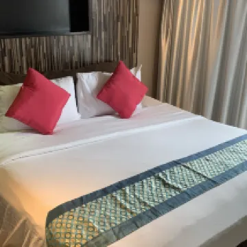 優點:飯店位置優越,早餐不錯(甚至還有午餐可選),泳池乾淨整潔。 缺點:飯店需要翻新和改進。房間鑰匙巨大且過時(不是房卡)。沒有一次性拖鞋,毛巾很少,浴袍也破舊不堪。淋浴裝置幾乎掛不上,也沒有洗髮精架,非常不方便。清潔服務很差:除非要求,否則地板從來不清洗;床單一週換一次;陽台和煙灰缸兩週都沒打掃過一次。工作人員非常不友好,試圖無視我們或乾脆無視我們。工作人員經常為客人使用電梯,儘管飯店有自己的電梯,這耽誤了等待時間。電梯非常老舊,光線昏暗。飯店沒有熨斗、花瓶、桌子,陽台上也沒有晾衣架。房間本身很小,光線也不足。電源插座位置很彆扭(搖晃,充電也很困難)。浴室裡有黴菌,房間和陽台上都有螞蟻。隔音效果很差——房間隔壁就是清潔工的房間,她每天早上都會在那裡搖晃她的設備。鄰居也常吵鬧。遊戲室又髒又破。只開放時間是早上9點到晚上9點,所有東西都要登記:遊戲費、毛巾費(毛巾已經過時了)。 我們正在度蜜月,酒店並沒有祝賀我們,也沒有特別表揚我們,儘管我們在普吉島住過幾家酒店,在各地都有過美好的蜜月經歷,有很多可以比較的地方。很遺憾,我不推薦住在這裡。