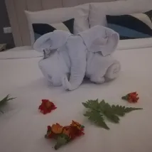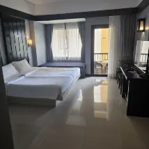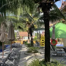 Останавливалась на одну ночь. Территория отеля замечательная, зеленая, пышет зеленью, 2 бассейна, около них нельзя распивать свои напитки и соответсвенно есть свою еду. Персонал дружелюбный. Отель небольшой. Номера не очень понравились, темновато, мало розеток, слегка ушатанное все. Но есть большой телевизор со смарт.. правда он не работал.Местоположение отличное, до ночного рынка и пляжей рукой подать. Отель выдает пляжные полотенца, в номере есть тапочки, чай, кофе, вода. За ту цену, что я заплатила в низкий сезон более чем )