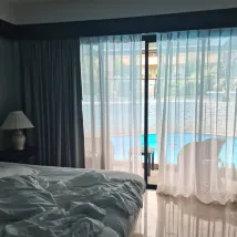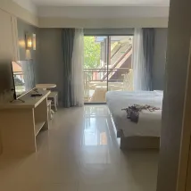 Номер с видом на бассейн очень уставший, особенно замок на двери, открывался раза с 5-10. Бассейн тоже в отколотых плитках. Периодически забредал геккончик, был или в ванной, или у кровати. При этом местоположение огонь, персонал очень приветливый, была проблема с замком на двери и сейфом, решили сразу же. Территория очень красивая.