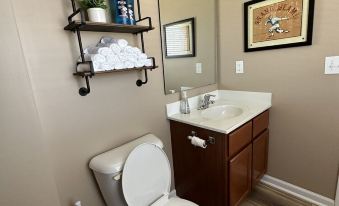 Great house. Clean. Tons of towels. Walked in and saw Hershey's kisses on all the beds (2 of them if it was a double bed) and in the kitchen was a basket full of Cracker Jack snacks and Peanuts (to keep on with the baseball theme for the house). Great spaces indoors and out for gatherings. This house is updated and in excellent shape. They ask that you take your shoes off and when you walk in, it's so clean that you feel like you want to take them off anyway - Nice, plush carpeting upstairs. Great place to stay with family and friends.