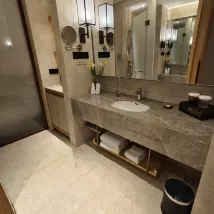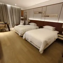 這次出差選的酒店太驚喜了!從進大堂就感覺格調很在線,現代感的高樓外觀特別大氣,停車也方便~ 房間一開門直接被驚艷到!新中式裝修高級又温馨,雙床寬敞整潔,窗邊視野能看到河景和樓羣,採光超棒 衞生間乾濕分離做得很細緻,洗漱台還是雙台盆,和同事一起住太方便了!細節也很到位,床品軟乎乎的,燈光氛圍特別舒服,辦公區和沙發區的隔斷設計很有質感,住進來就覺得放鬆~ 服務也很貼心,辦理入住速度快,工作人員態度特別好。整體體驗感滿分,下次來這邊肯定還選這家!