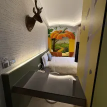 酒店位置好,距離大街很近但又不嘈吵,房間大小合適,裝修新淨,燈光充足,感覺很舒服。空調力度足。陽台牆壁有繪畫及蘑菇餐桌,只是面積偏小,景觀也一般。淋浴間只以浴簾隔開,透明度挺高,如朋友一起會不方便。老闆夫婦非常熱情,招呼周到。