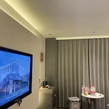 前台服務特別熱情體貼且耐心~ 酒店非常乾淨整潔!內部裝潢時尚漂亮! 親子房三張床,其中還有一個大床,非常舒適! 智能馬桶,有加熱坐墊! 距離古城一條街,打車到南門起步價9元左右,非常方便! 樓下都是菜館,吃東西也非常便捷~